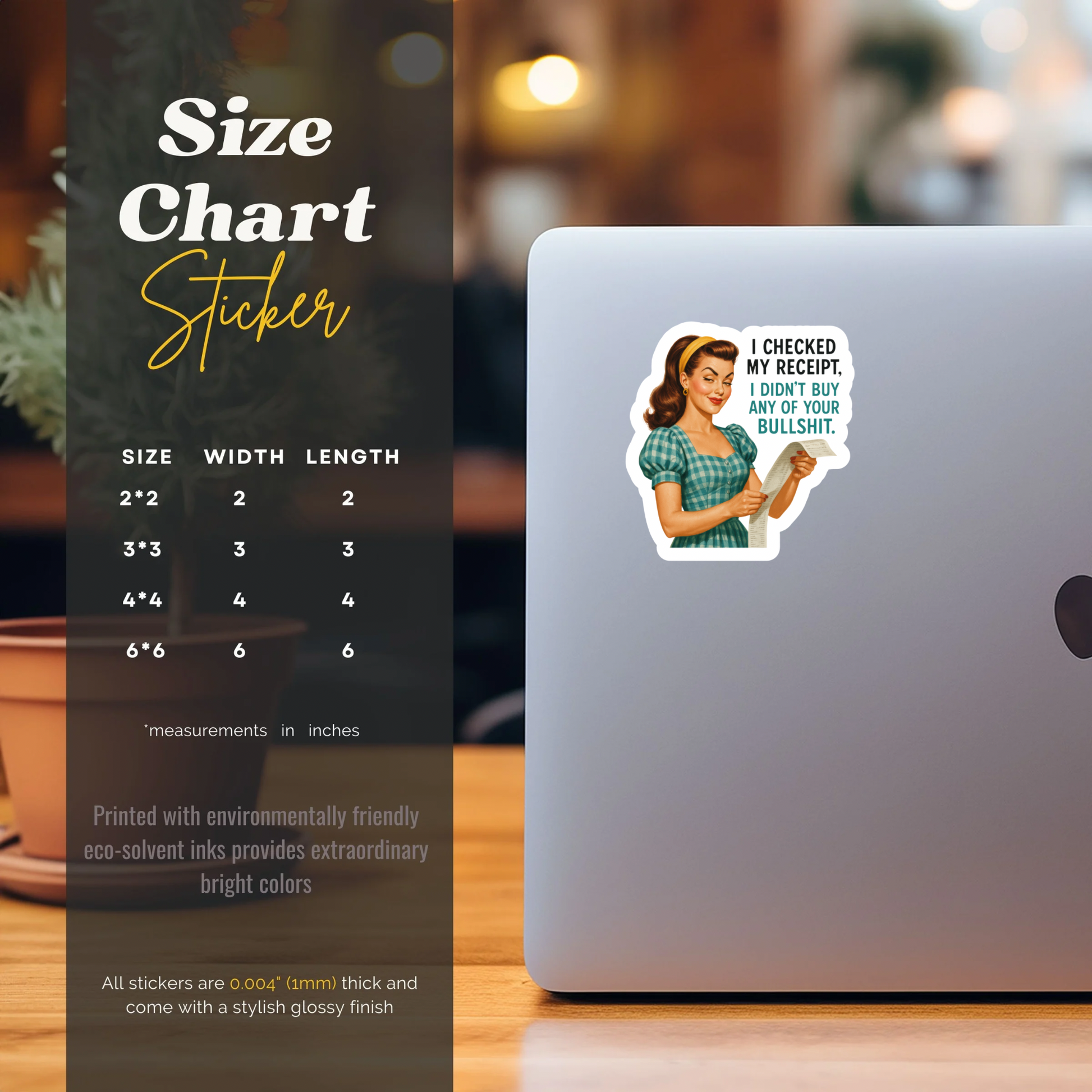 Retro-style vinyl sticker featuring the quote “I checked my receipt, I didn’t buy your bullshit.” Durable, and made for laptops, bottles, and more.
