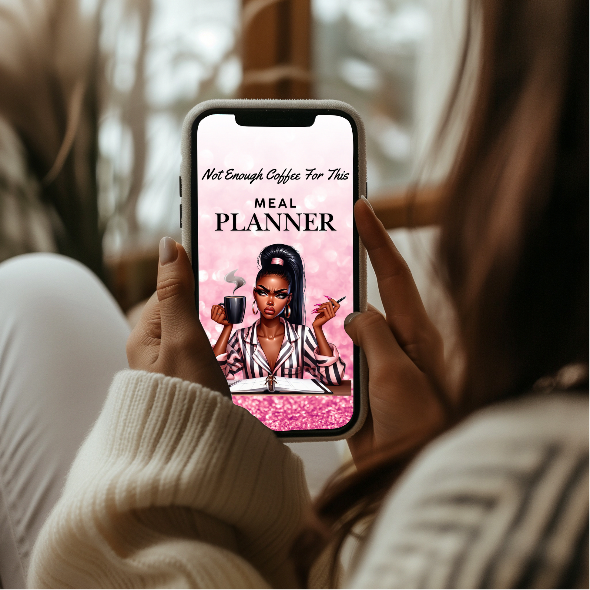 Not Enough Coffee For This is a stylish yet functional digital meal planner designed to bring calm to everyday food planning. It’s lighthearted, easy to use, and intentionally flexible so you can plan meals your way—whether you’re cooking daily or just trying to stay organized.