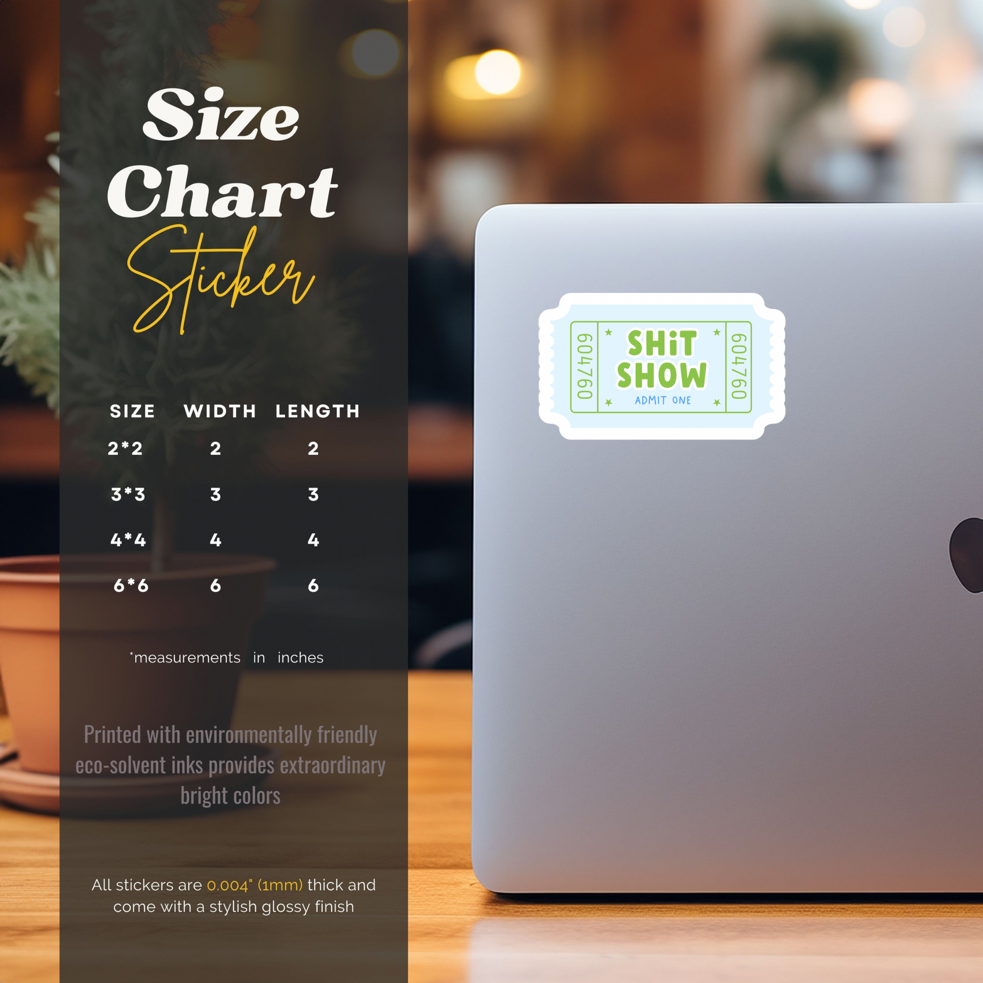 A ticket-inspired vinyl sticker using a blue colorway and retro structure.