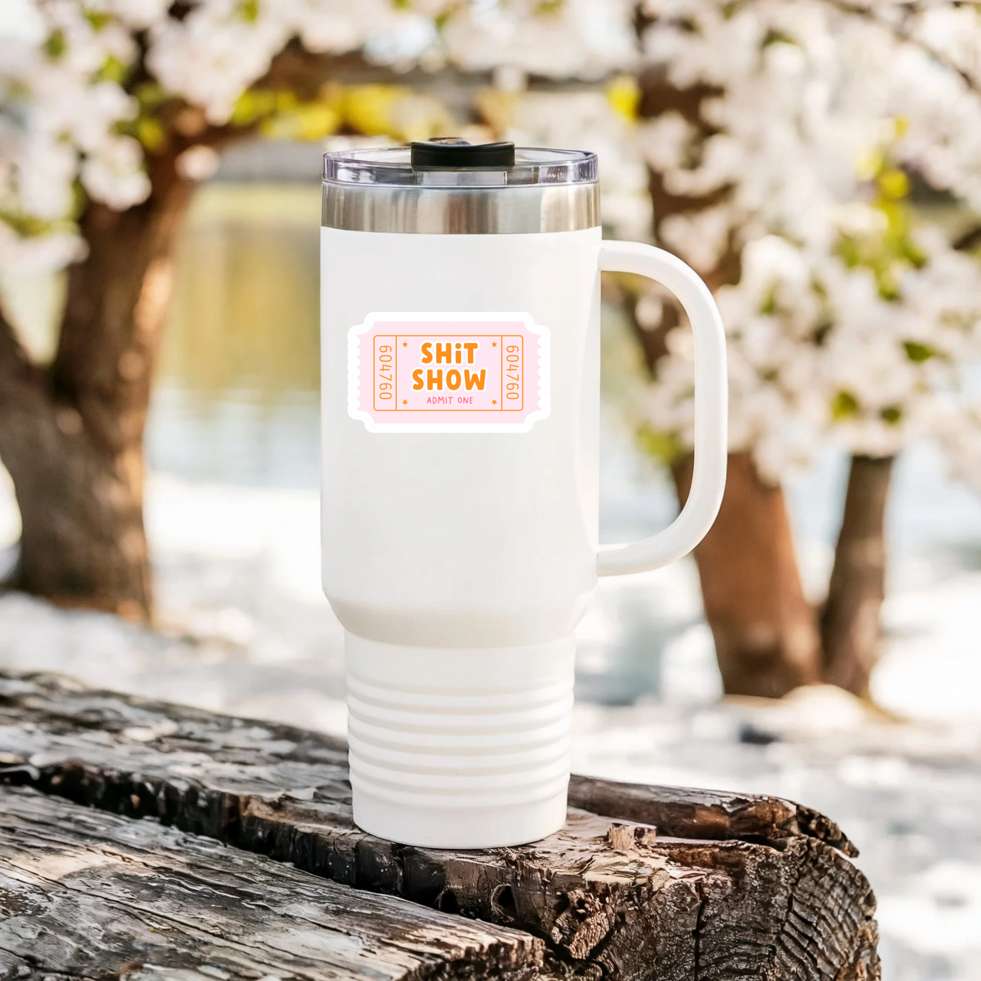 A ticket-inspired vinyl sticker with a pink colorway and retro layout. Works well on laptops, notebooks, water bottles, and other flat surfaces.